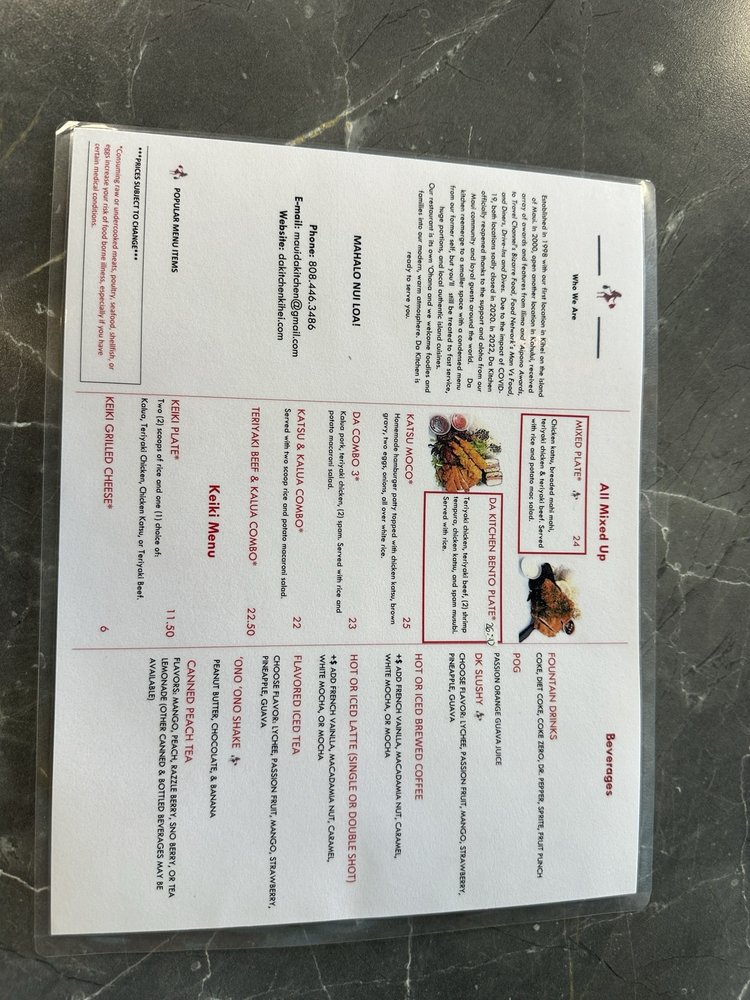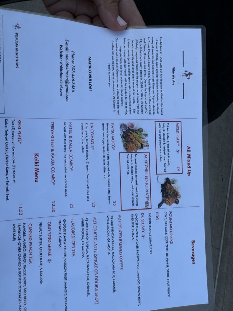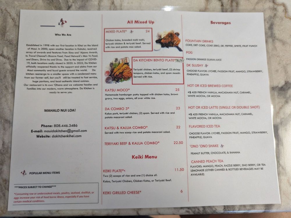 Da Kitchen Maui, located in Kihei, Hawaii, offers a wide range of traditional Hawaiian cuisine with a modern twist. The menu includes favorites like spam musubi, loco moco, beef teriyaki, and deep fried musubi. Customers rave about the flavorful dishes, generous portions, and excellent service. The atmosphere is relaxed and inviting, perfect for a casual meal with family or friends. The restaurant also offers outdoor seating, catering options, and a military discount. With options for takeout, delivery, and reservations, Da Kitchen Maui provides convenience and delicious food all in one place. Whether you're a local or a tourist, this hidden gem is a must-visit for mouthwatering Hawaiian comfort food.